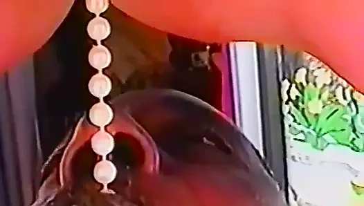 Rozella is a plump blonde mature lady. We find her on her knees, pulling a pearl necklace out of her pussy. George is a younger black man. He gets under her and pulls the necklace with his mouth. They have set up their camera on a tripod so they can tape their homemade adventures! They move to the couch next and she strokes his cock. She gets down next to him and sucks his shaft, giving him a nice blowjob. She then takes his place on the couch and he licks her pussy while she spreads her legs in the air. He puts his cock in her pussy and fucks her missionary while she rubs her clit with a vibrator. After he gets going, pumping into her hard she starts expressing her pleasure loudly, yelling dirty commands. She rubs her clit and he pulls out and cums on her stomach. When he finishes they both laugh with satisfaction.