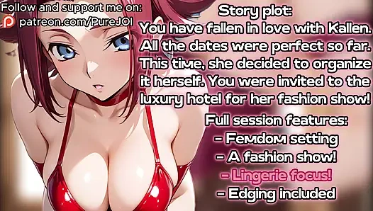 Kallen Kozuki has invited you for a date to the luxury hotel... There, she decided to make a special fashion show for her beloved, which is going to feature some really sexy and hot lingerie-based costumes... Each one is getting hotter and hotter, and in the end... A special edition is waiting for you, cutie!